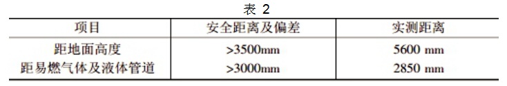 其中距地面高度實測值已經(jīng)滿足標(biāo)準(zhǔn),但是與燃?xì)怏w的距離太近,容易產(chǎn)生起火,一旦發(fā)生起火事件,那么后果是十分嚴(yán)重的。在檢測的過程,還發(fā)現(xiàn)有一個液體管道是后來加上去的,與原裝的配件存在偏差,并且在安裝的時候沒有考慮安全距離的問題,從而加劇了安全隱患的數(shù)值。